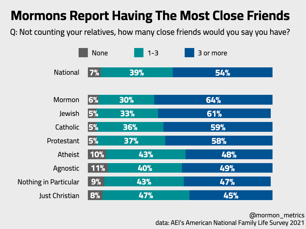 Mormons report having the most close friendships.