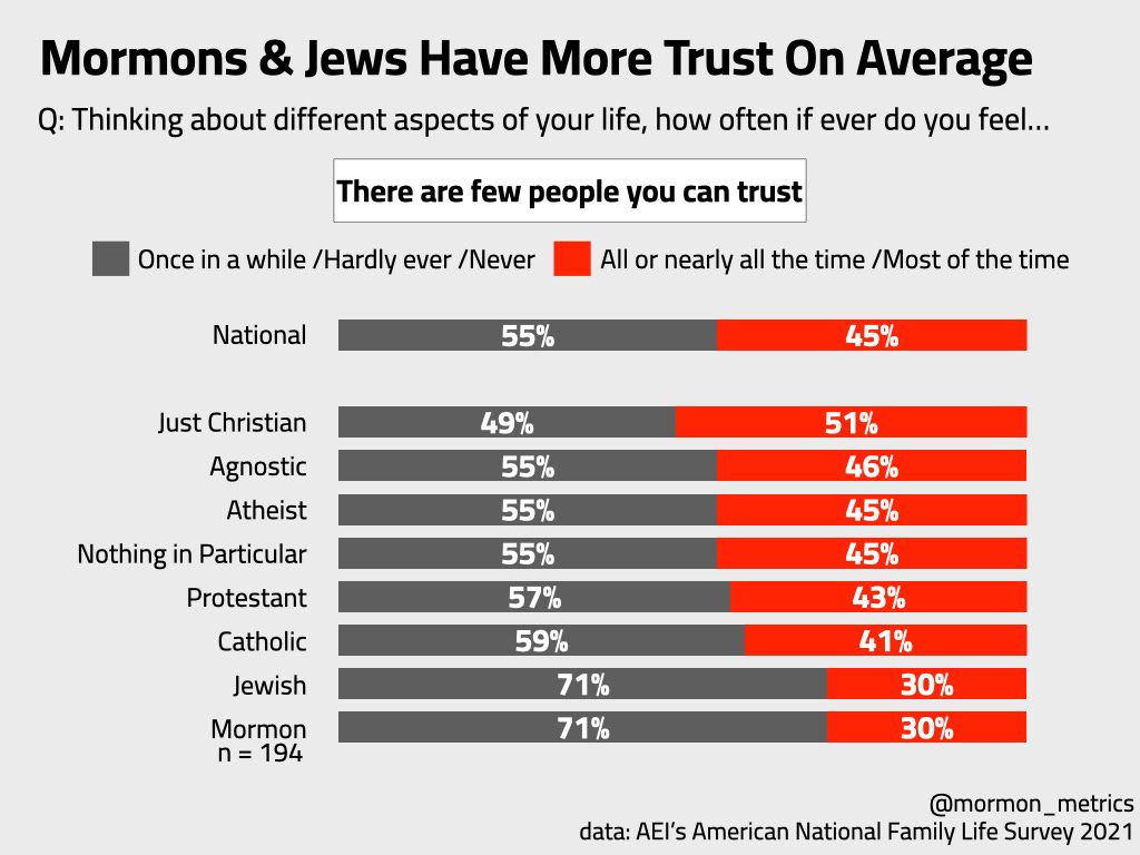 Mormons also seem to be more trusting of others generally.