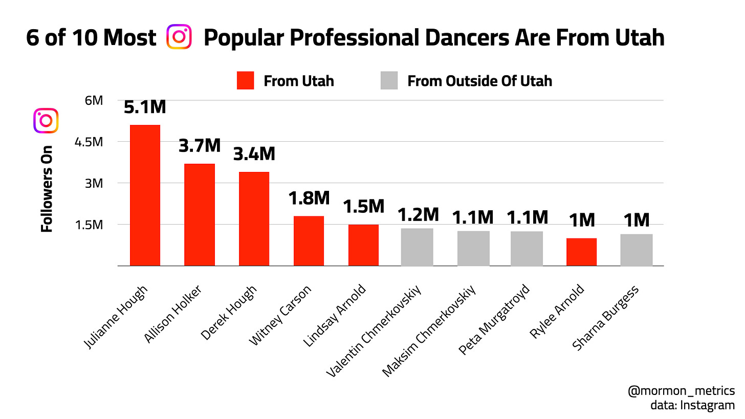Not only are there more Utah dancers than any other state or country, but the Utah dancers are disproportionally more popular.