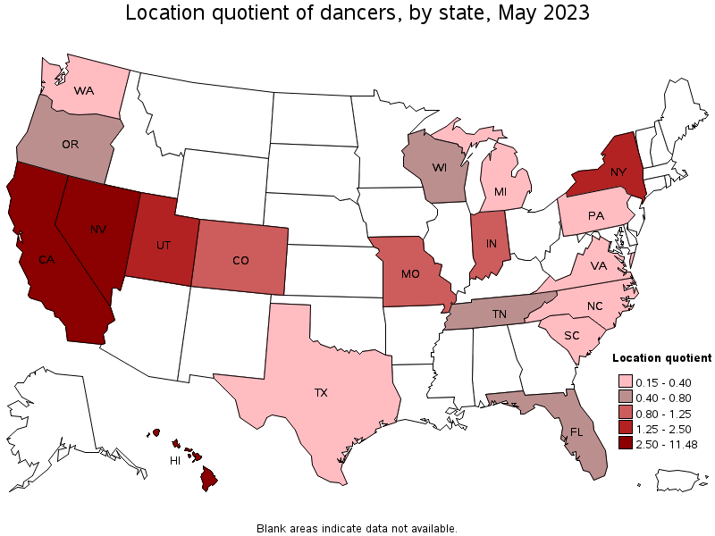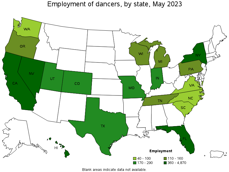 The Bureau of Labor Statistics however provides some information on the job outlook of dancers including a state-by-state breakdown.