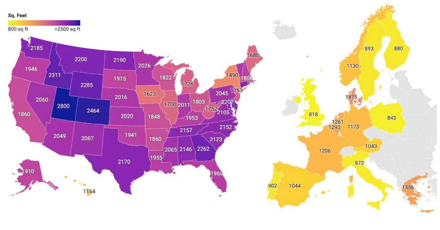 So, as you can see, I confirmed this trend. When you look at houses being sold, Utah ranks number one in home size with notable separation from all other states. I didn’t pull data on housing data in Europe, so that part is still unverified.