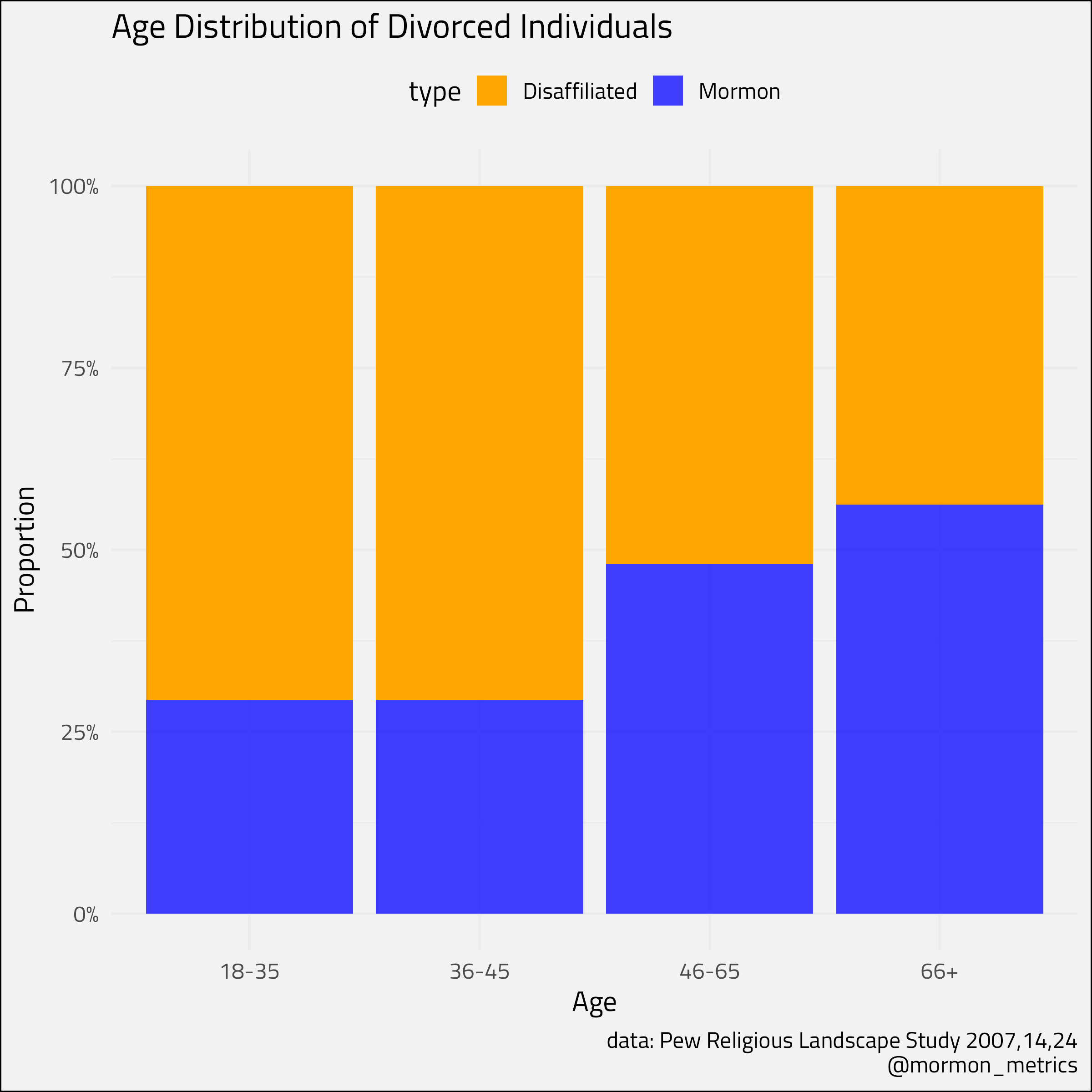 I had someone reach out asking for a break among divorced Mormons, so since I had all the data pulled up I figured I could share a chart or two on this.