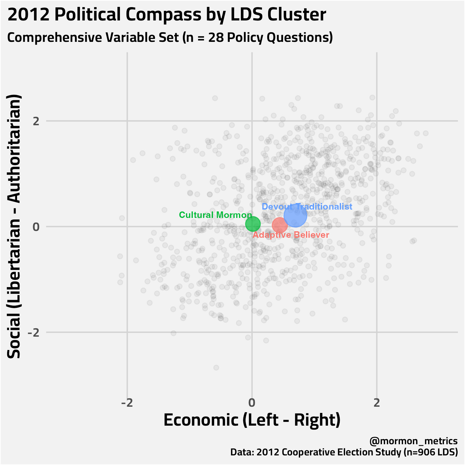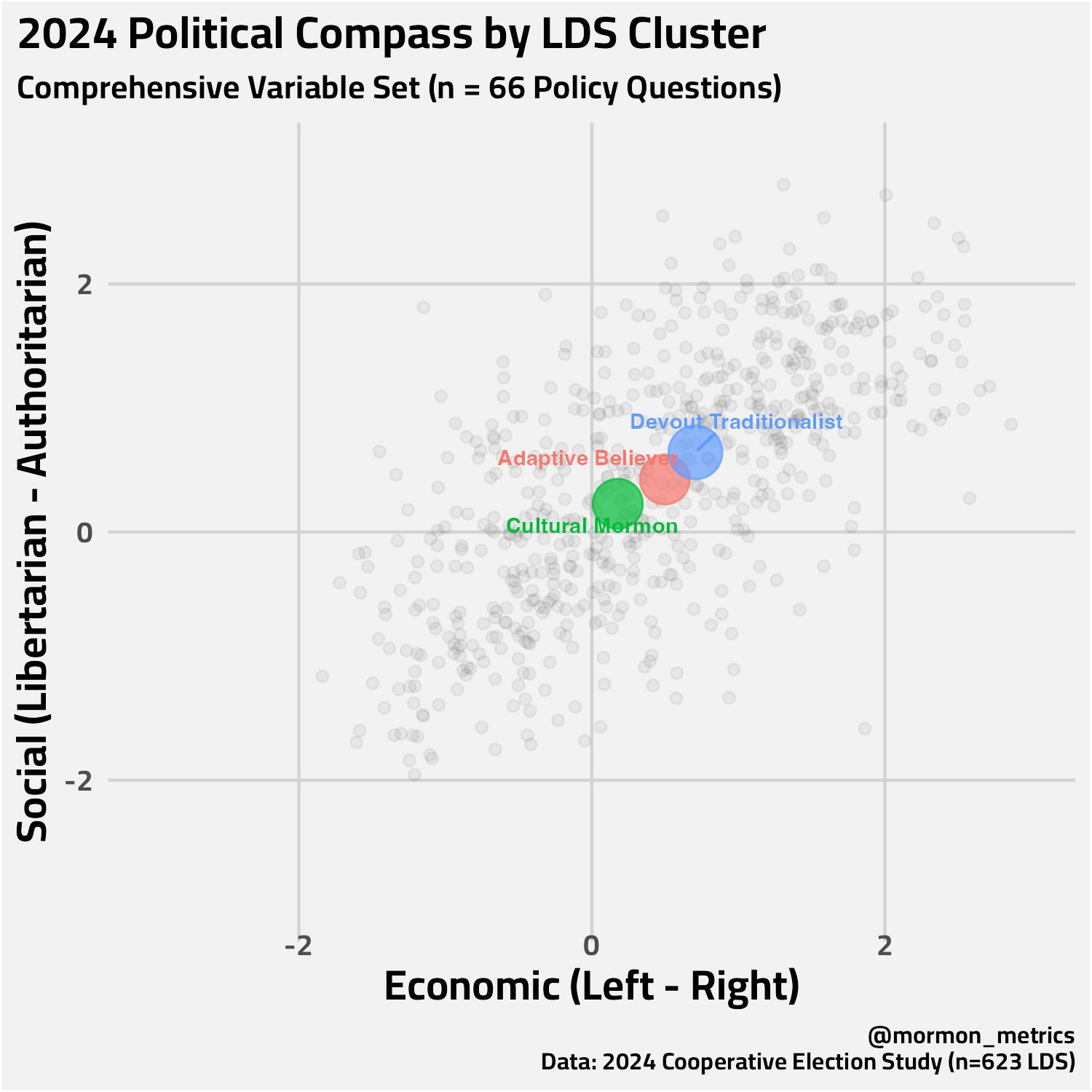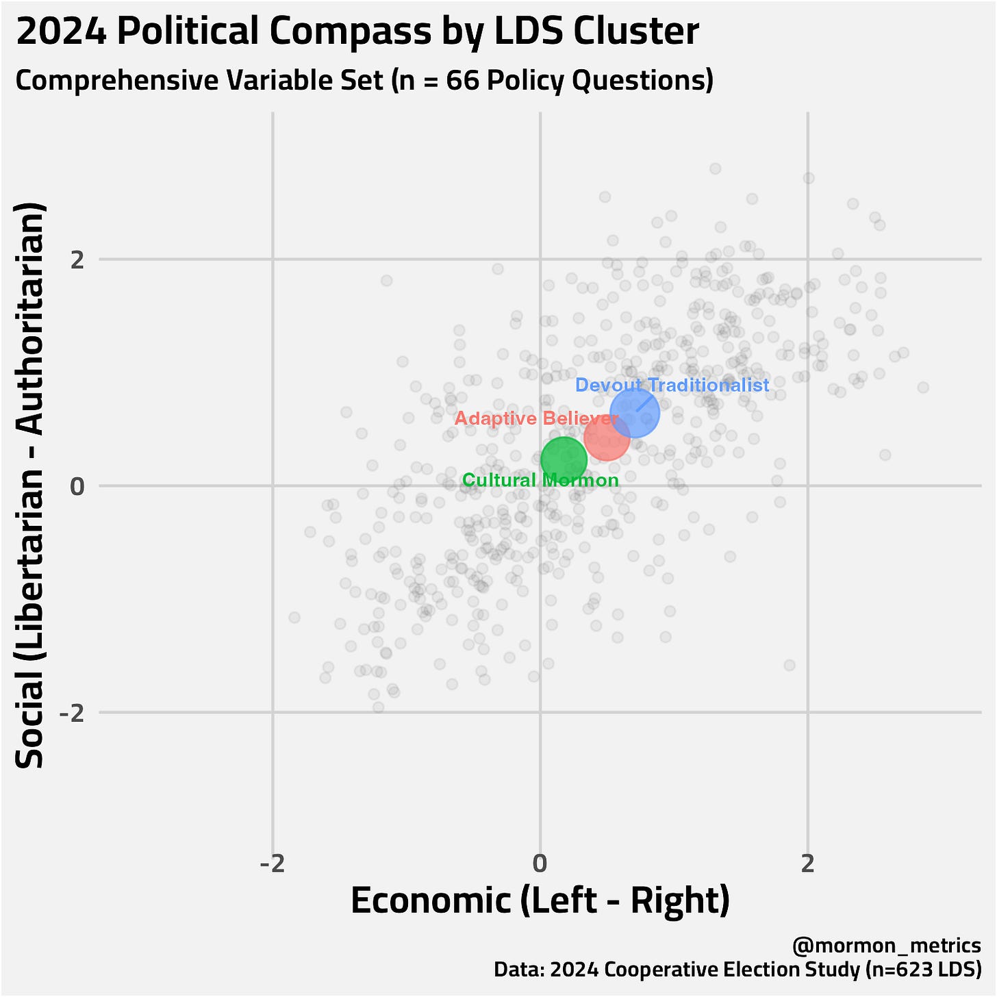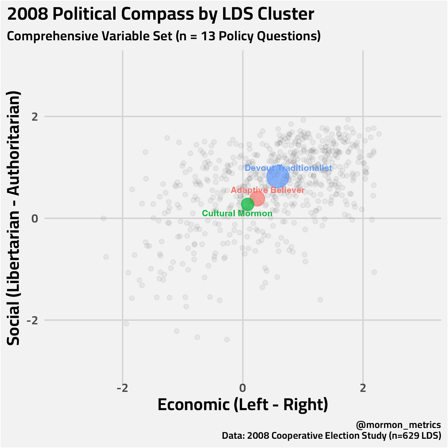 From where I live in SLC (which you know well since you served with us as a missionary), there is a large representation of highly-educated, devout, left-leaning members of the church. I don't know if that is a quirk of SLC East side or not. What I have observed is that left-leaning members who stick around get a lot of practice in cognitive dissonance, in thinking through areas where they differ from official church policies or from prominent church leaders, and in finding ways to manage that. The LGBTQ policies and events of the past ten years have pushed some of these people out, but many have found ways to remain in church activity and belief despite the challenges. I think the pandemic and the rise of MAGA are pushing some of our right-leaning members into those spaces of cognitive dissonance and conflict with leaders (remember President Nelson asking us to wear masks to church!, or church statements on rooting out racism or immigration policies), and I suspect they are not as experienced in navigating them (and possibly their personality types and worldviews actually make that type of gray-zone thinking more difficult for them). I don't know if you have any data about that, but it could partially explain the shrinking "highly devout" category and the leftward shift, since the highly devout left-thinkers have already had many challenges to their faith over the years so may be a relatively stable demographic.