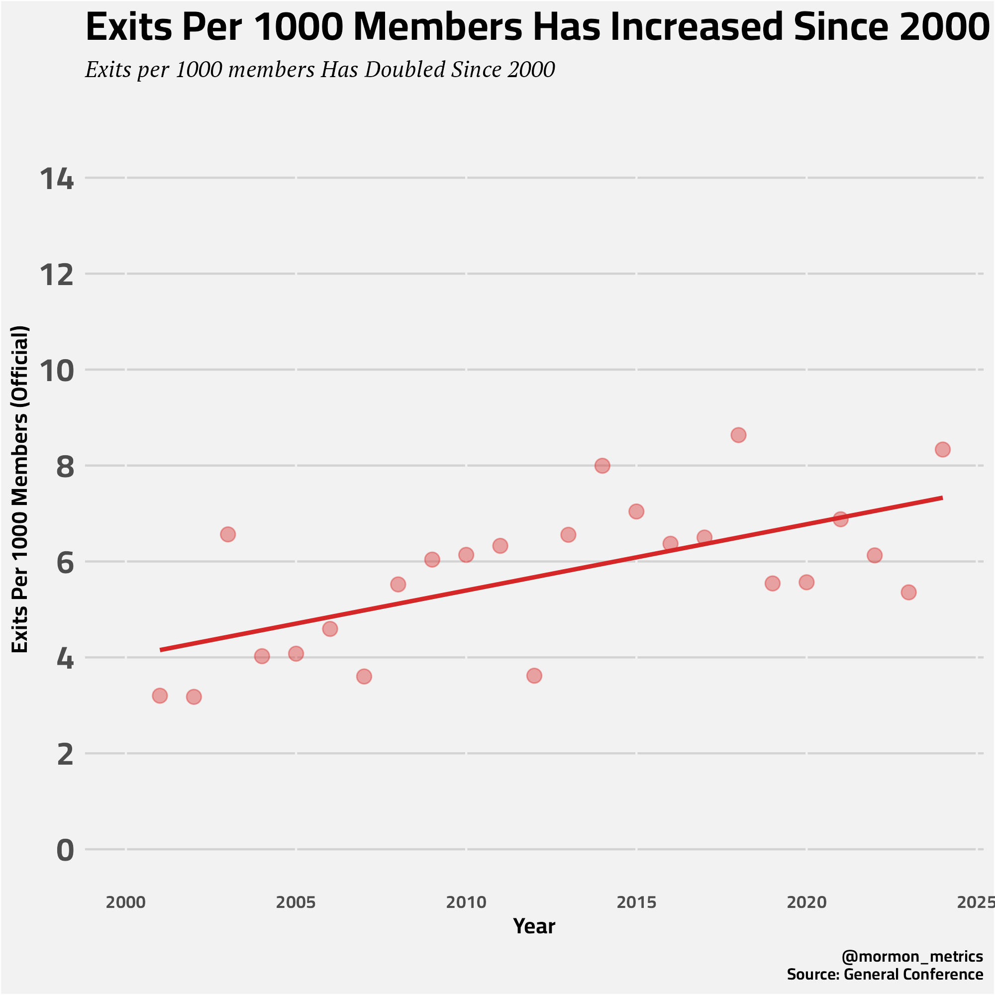 I’d wager that more members may be going less active (like we figured in the birth data) which would increase the number of exits if we say 1 out of every 3 less actives removes their records(just pulling that number out of thin air). This would also support previous analysis I’ve done from the Pew Religious Landscape Study where I found a 54% increase in disaffiliated members from 2007 to 2024. A 54% increase since 2007 tracks pretty well with the exit chart above. Link to analysis👇👇