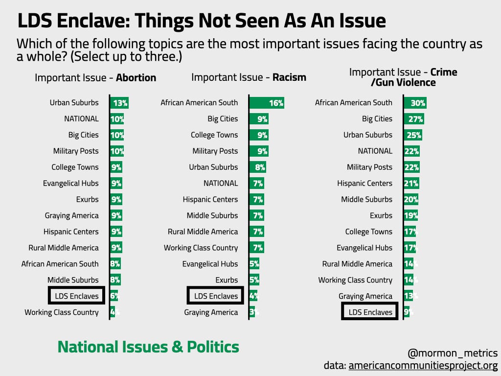 What do you think of this data? Is this accurate from your experience and perspective? If you are Latter-day Saint, do you share similar political priorities?